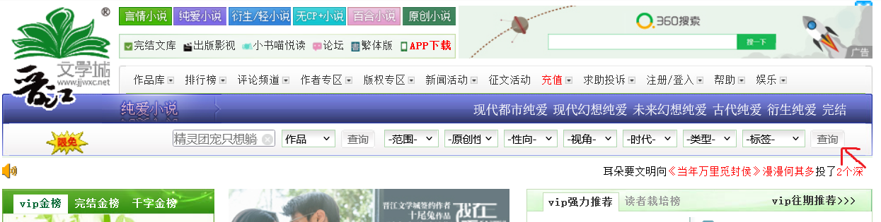 ・デフォルトでは「作品积分」になっているので目的に応じて「收藏数(ブクマ数)」などに切り替えられる